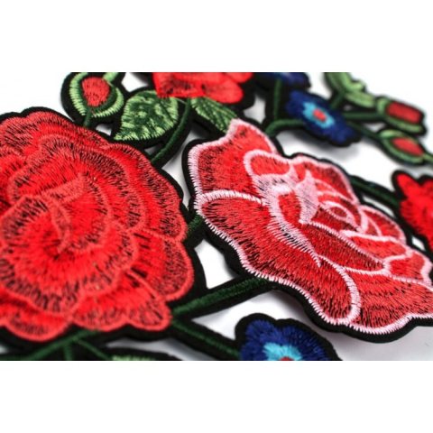 Naszywki kwiaty W odcieniach czerwieni i zieleni. Komplet 2 sztuk. Pokochały je światowe fashionistki i blogerki! Świetny i szybki sposób na urozmaicenie swojego ubrania, np. kurtki, jeansów, bluzy, t-shirtu lub nawet butów oraz bielizny! Teraz i Ty możesz wyglądać oryginalnie, modnie i kobieco. 1 Wymiary:- długość: 23,5 cm – szerokość: 13,5 cm