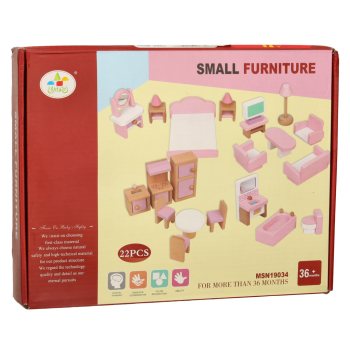 Mebelki do domku dla lalek salon sypialnia łazienka kuchnia drewniane różowe