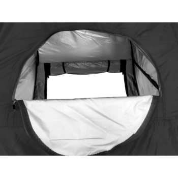 Z przodu znajduje się wejście zapiane na zamek błyskawiczny. Z tyłu jest mały otwór również zapinany na zamek błyskawiczny, który doskonale sprawdzi się w roli okienka. Namiot nie posiada podłogi.