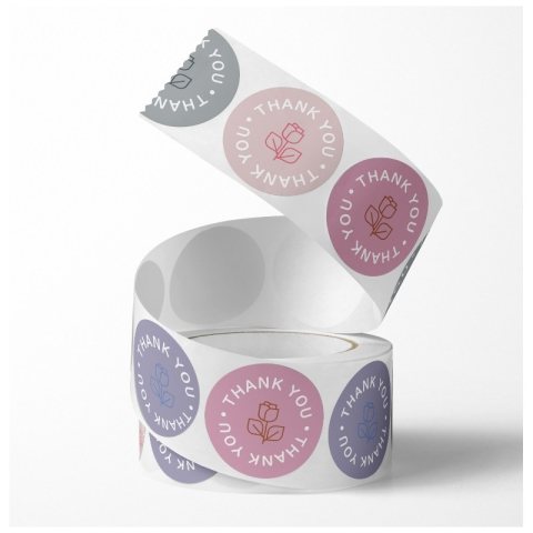 500 sztuk naklejek THANK YOU na taśmie Naklejki ozdobne, etykiety samoprzylepne Cena za zestaw 500 naklejek – rolka Dane produktu: Wymiar naklejek: koło 25 x 25 mm Waga: 48g Materiał: papierowe