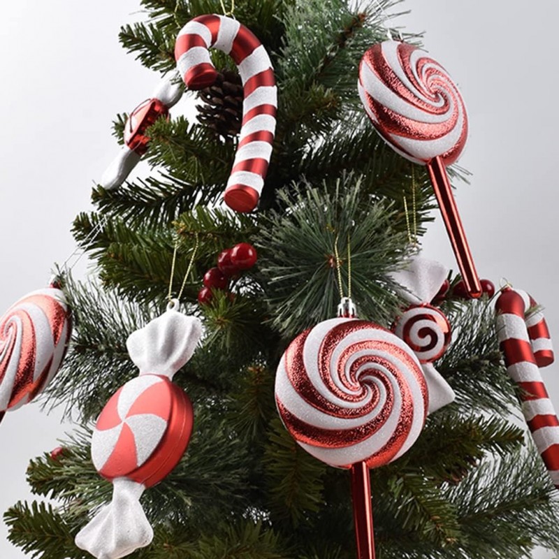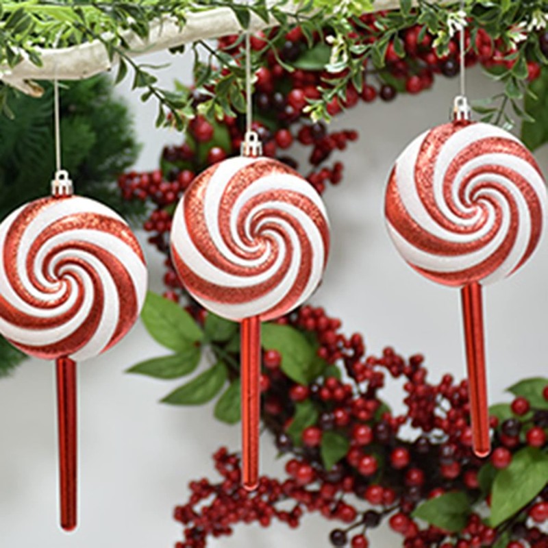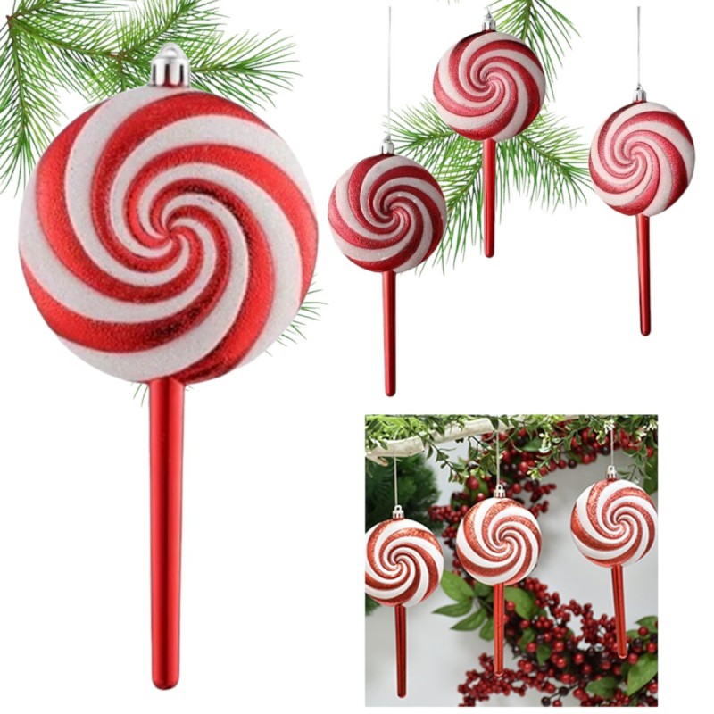 Bombka na choinkę 1 sztuka lizak czerwono-biały XXL 19x9cm BSN32