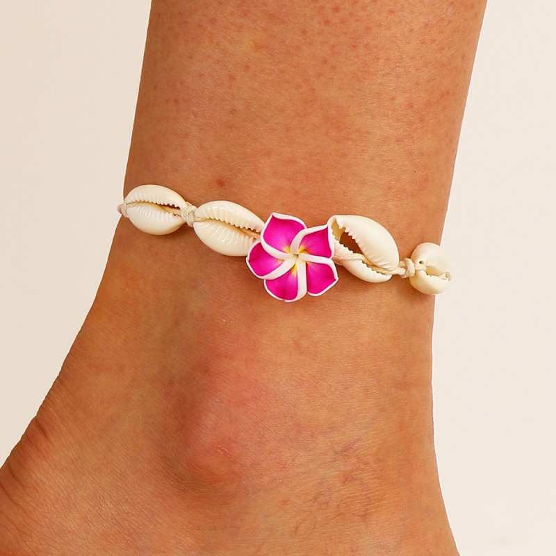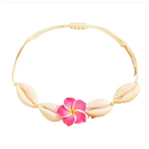 Bransoletka 2w1 na stopę i rękę, na sznurku, MUSZELKI i KWIAT HAWAJSKI B542F