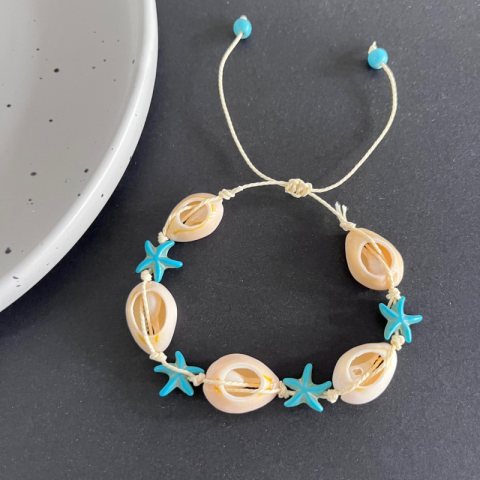 Bransoletka 2w1 na stopę i rękę na sznurku, MUSZELKI i ROZGWIAZDY B543N