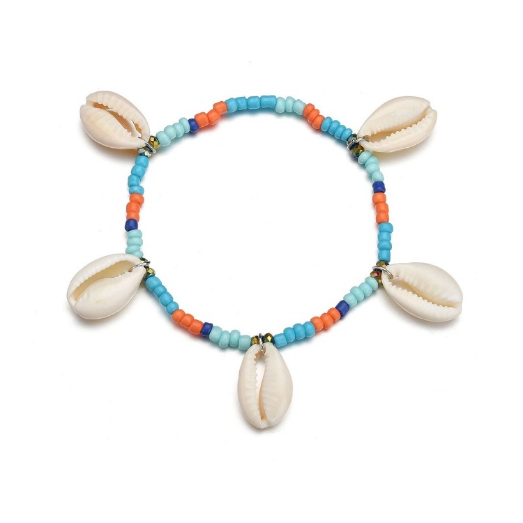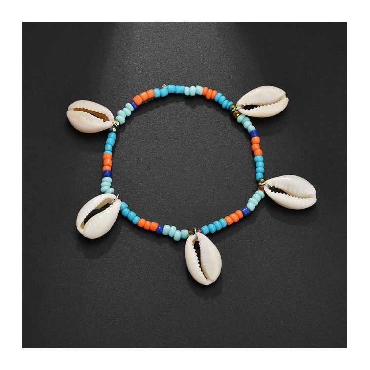 Bransoletka muszelki na rzemyku wiszące B355