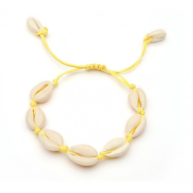 Bransoletka muszelki na rzemyku żółta B363ZO