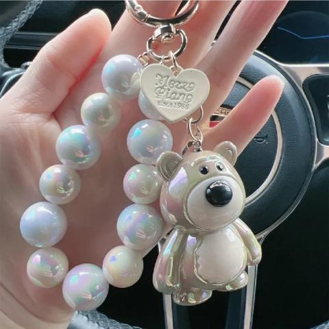 Brelok do kluczy, perłowy Miś z koralikami Kremowy BRL366K