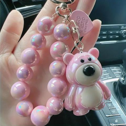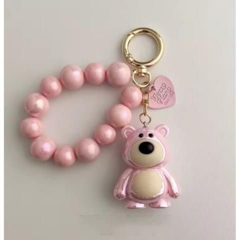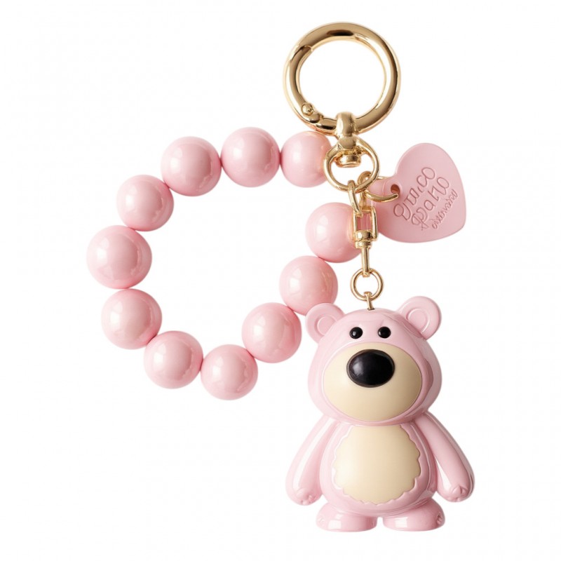Brelok do kluczy, perłowy Miś z koralikami Różowy BRL366R