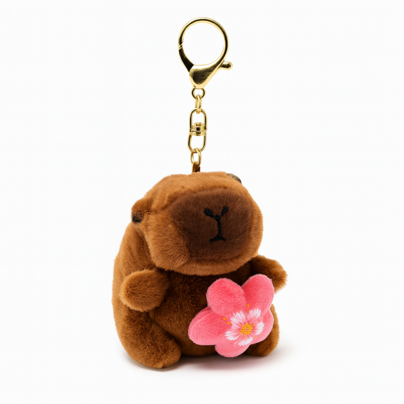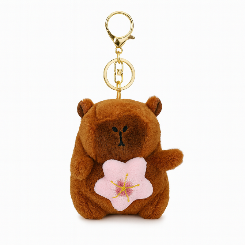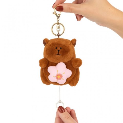 Brelok do kluczy pluszowa puchata Kapibara z obrotowym kwiatkiem, LOSOWY KOLOR BRL385