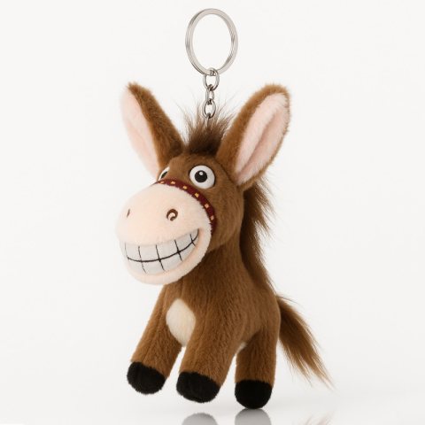 Brelok do kluczy, pluszowy osiołek z ogonkiem brąz BRL381BR