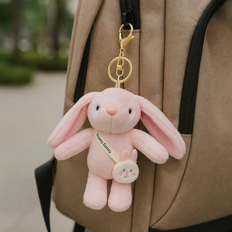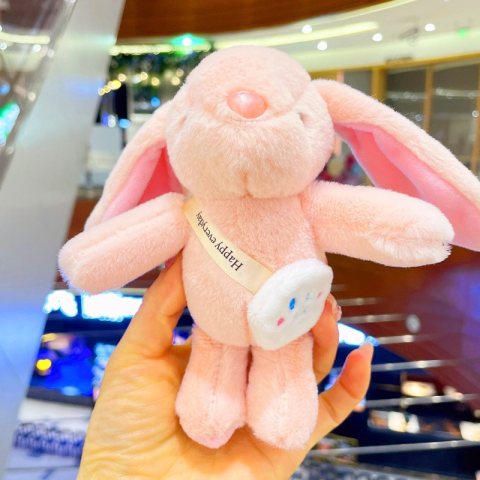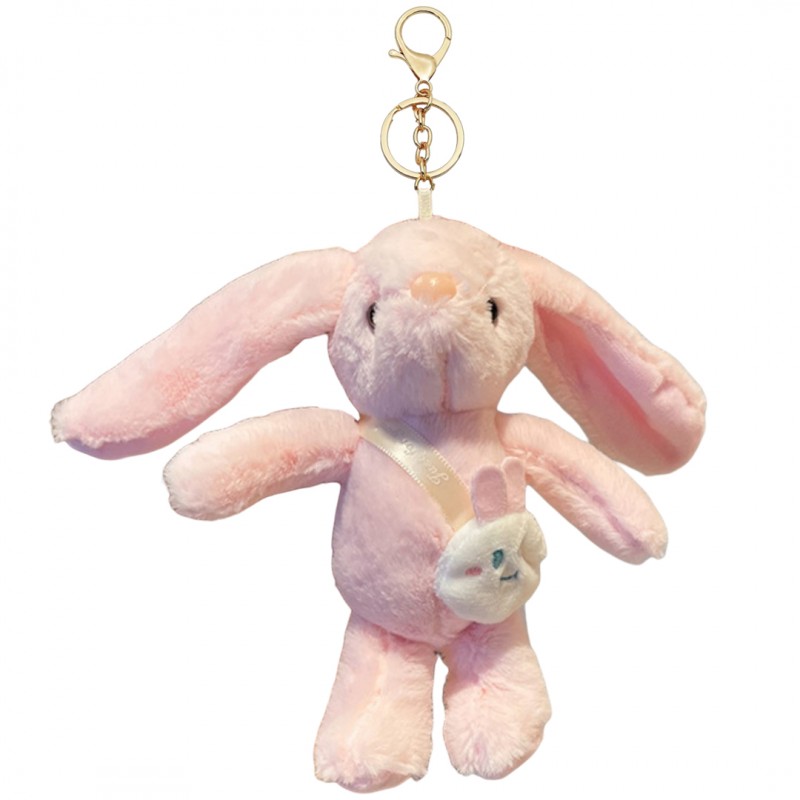Brelok do kluczy puchaty KRÓLIK, pluszowy różowy BRL368R
