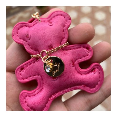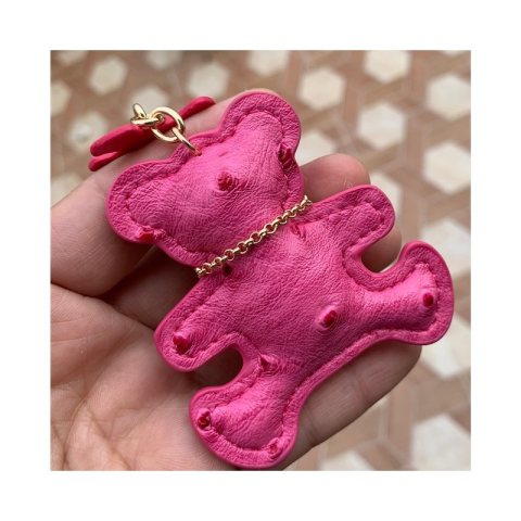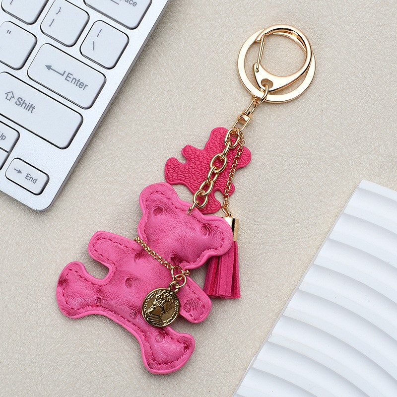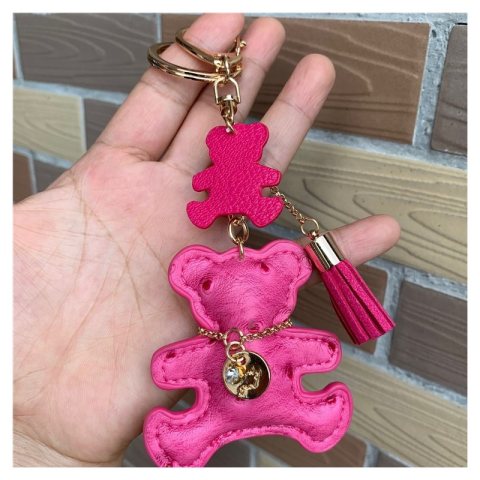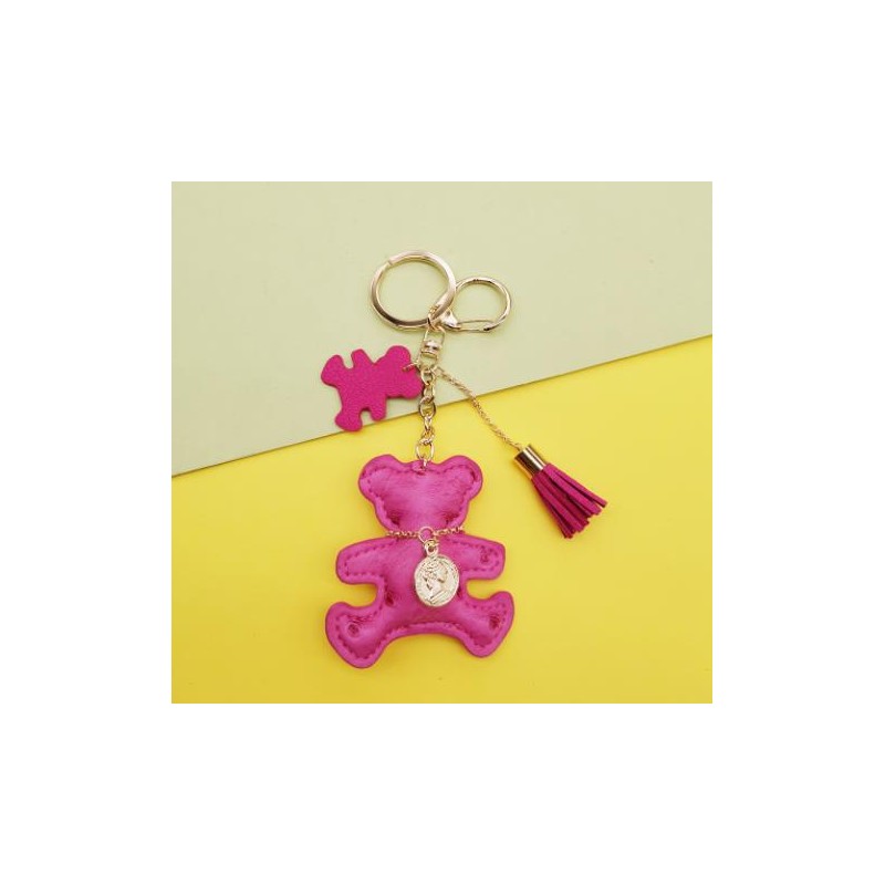 Brelok do kluczy skórzany MIŚ fuksja, frędzle BRL357