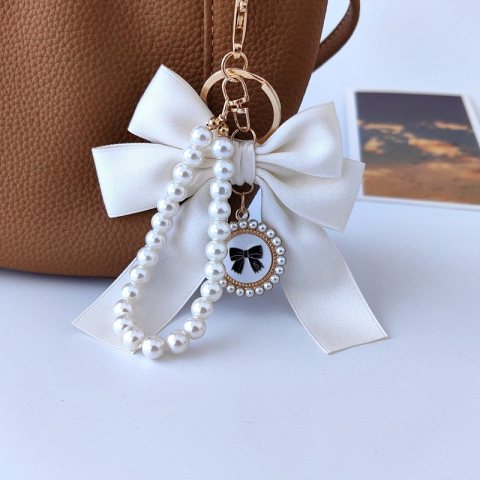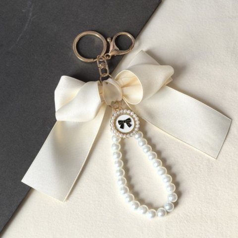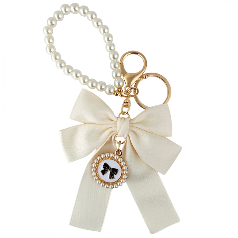 Brelok do kluczy z kremową KOKARDĄ i perłami BRL362K