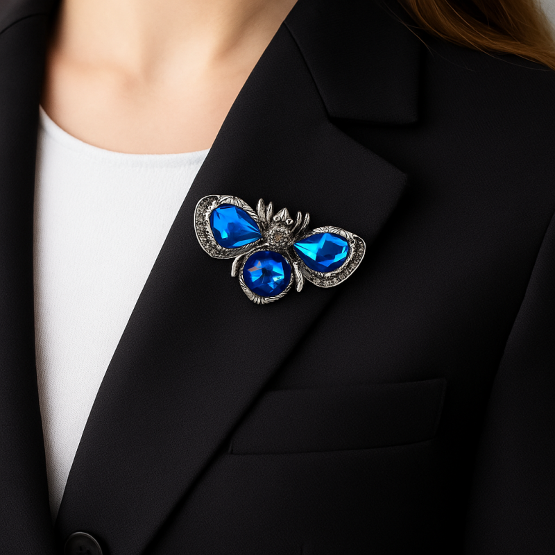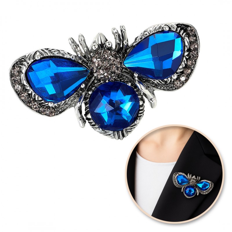 Broszka ozdobna – błękitny owad kryształy BZ223