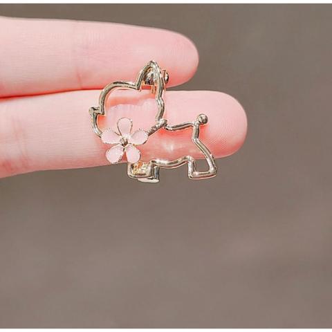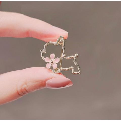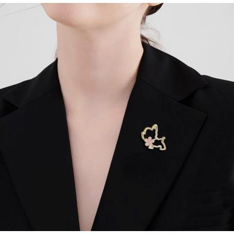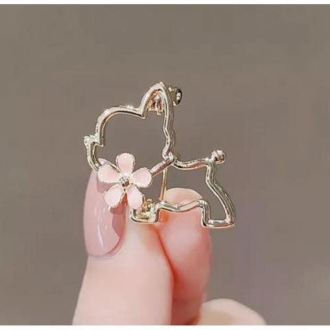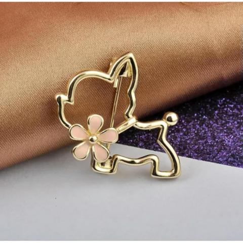 Broszka ozdobna emaliowana – piesek z kwiatkiem BZ210