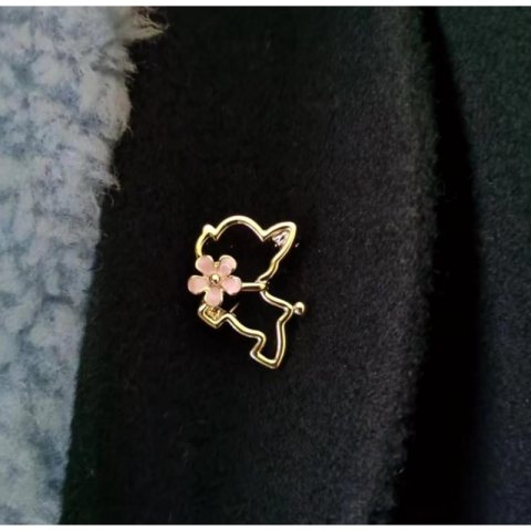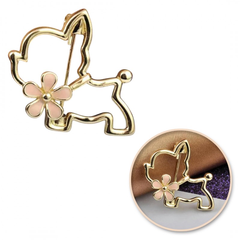 Broszka ozdobna emaliowana – piesek z kwiatkiem BZ210