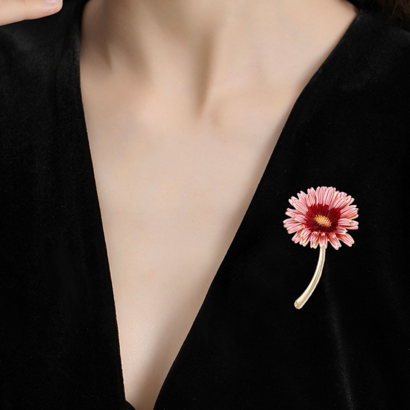 Broszka ozdobna emaliowana różowa stokrotka BZ199