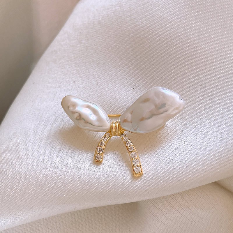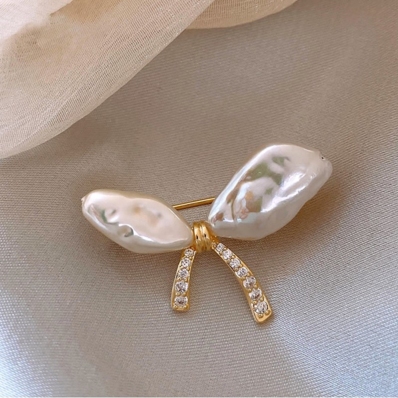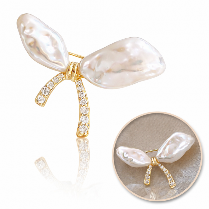 Broszka ozdobna – kokarda perły z cyrkoniami BZ213