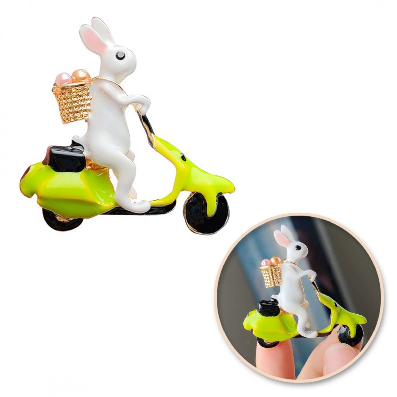 Broszka ozdobna króliczek z jajeczkami na skuterze BZ193