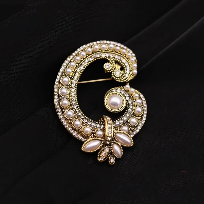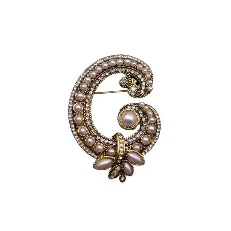 Broszka ozdobna KRYSZTAŁOWA Z PERŁAMI BZ128