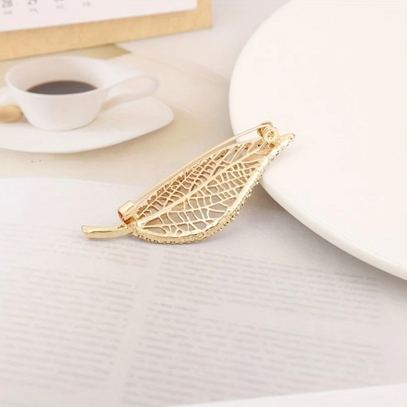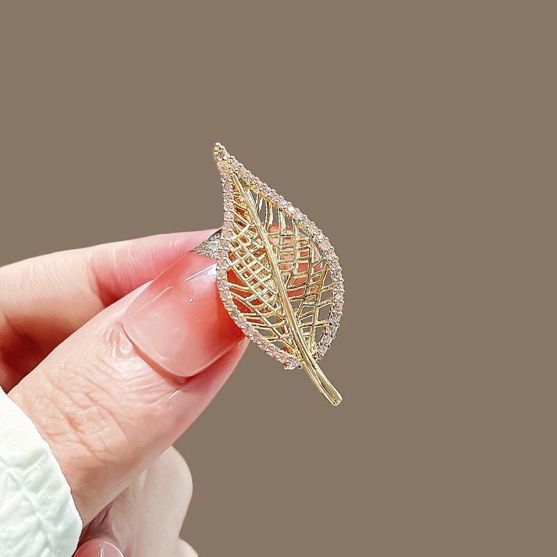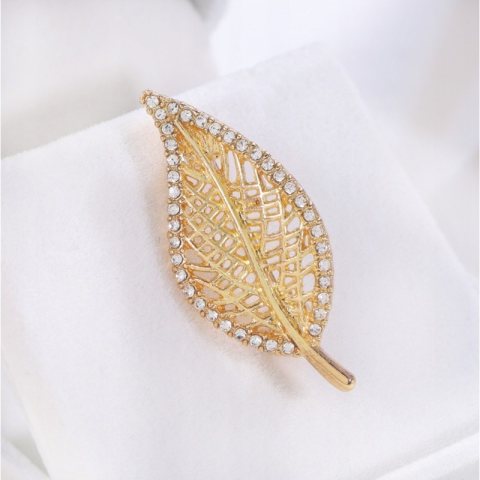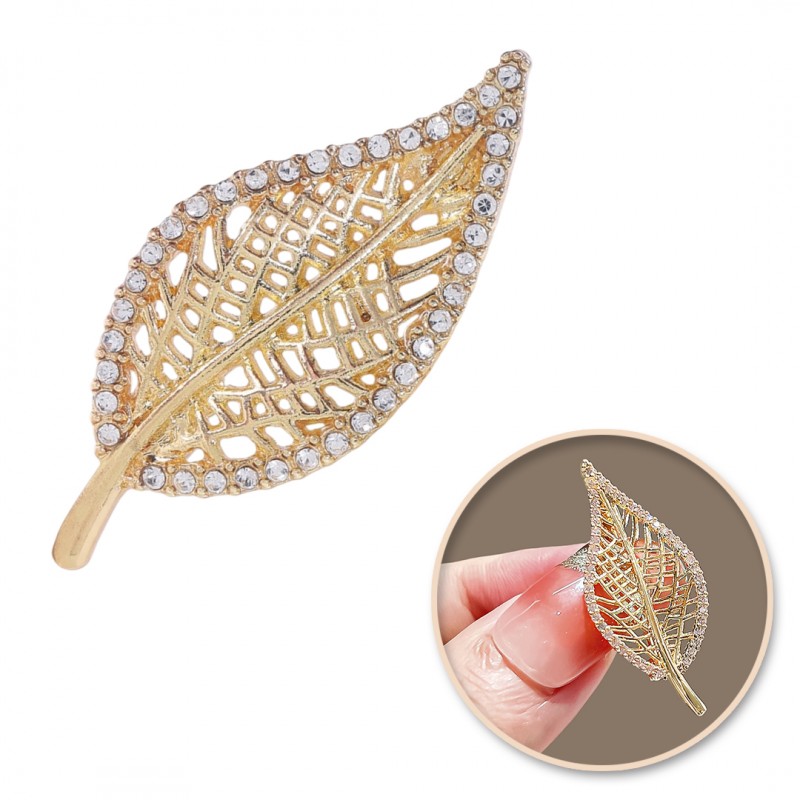 Broszka ozdobna – złoty liść z cyrkoniami BZ212