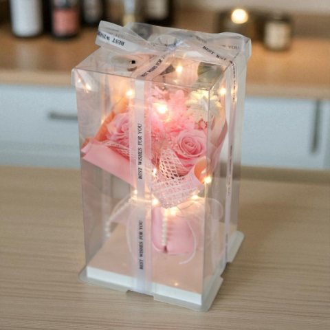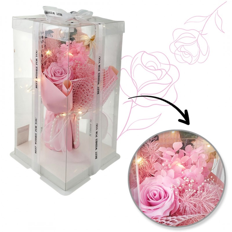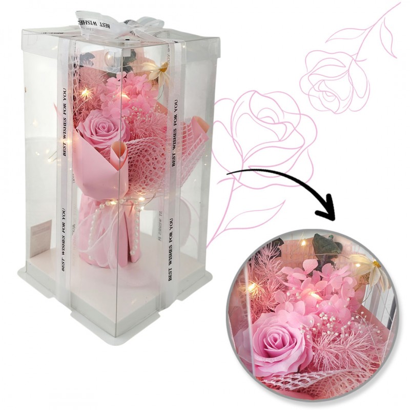 Bukiet zapachowych kwiatów mydlanych w pudełku na prezent, świecące LED BUK19