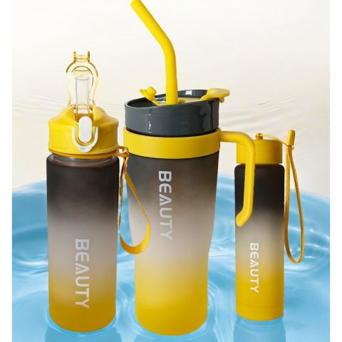 Butelka na wodę Bidon ombre 3w1 Kubek z uchwytem i rurką z miarką przenośny BD13WZ3