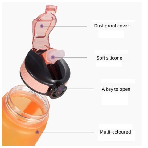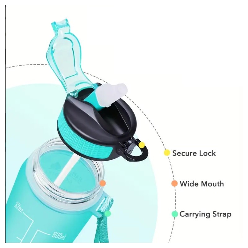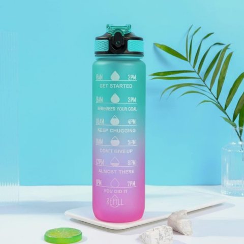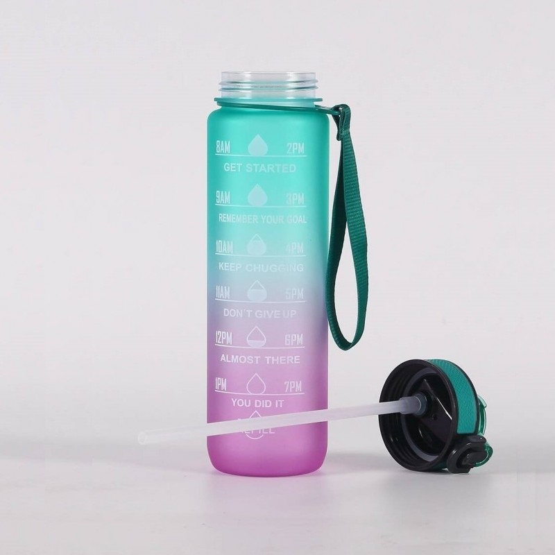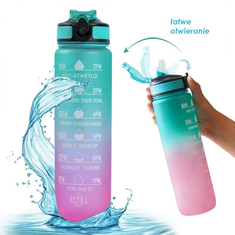 Butelka na wodę, bidon z miarką i słomką 1L OMBRE Zieleń z Różem BD19