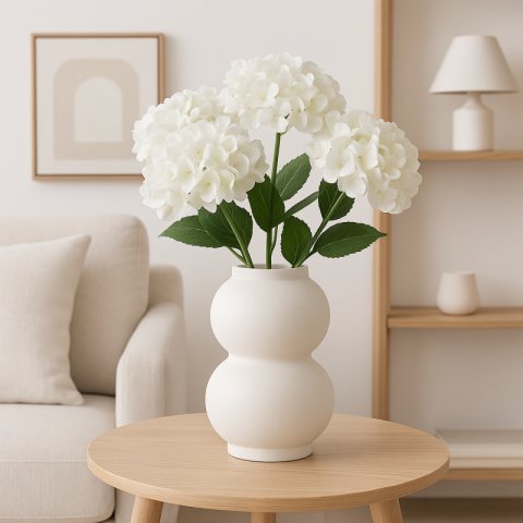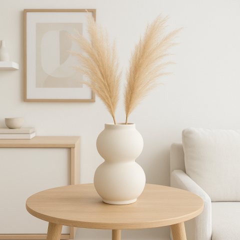 Ceramiczny wazon w stylu minimalistycznym w pudełku Minimalistyczny wazon ceramiczny — elegancka dekoracja w ponadczasowej bieli. Wykonany z matowej ceramiki, o nowoczesnym, organicznym kształcie. Doskonały do świeżych kwiatów, suszonych roślin lub jako samodzielna ozdoba wnętrza. Wymiary: 20,5 × 13,5 cm, otwór 6,4 cm Wymiary opakowania: 21cm x 14cm x 14cm Waga: 1086g netto / 1150g brutto Materiał: biała ceramika