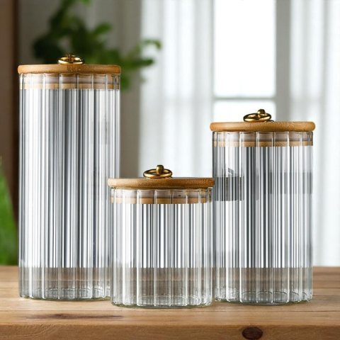 Cukiernica, pojemnik ryflowany z przykrywką bambusowa, rozm. L, 1150 ml 1szt SZK169