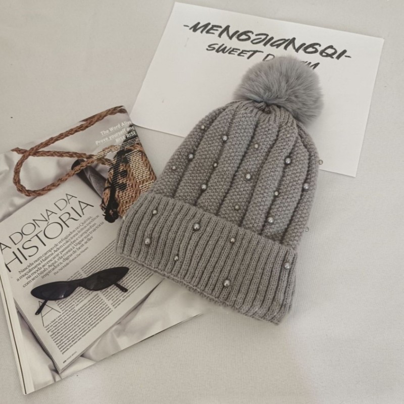 Czapka zimowa dzianinowa, miękka i ciepła, z pomponem i perełkami Bardzo ciepła i elastyczna czapka Idealna do zimowych stylizacji Świetnie sprawdza się jako modny dodatek lub okrycie głowy podczas zimowych aktywności fizycznych Rozmiar: uniwersalny Skład: Akryl 100%