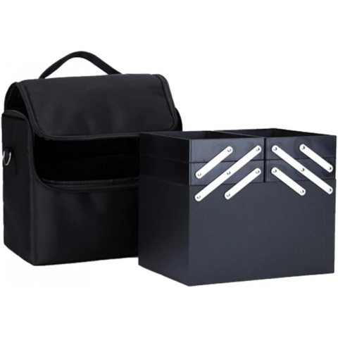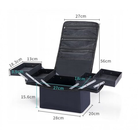 Czarna kosmetyczka rozkładana elegancki kuferek organizer na kosmetyki przenośna 25x28x20cm CB45