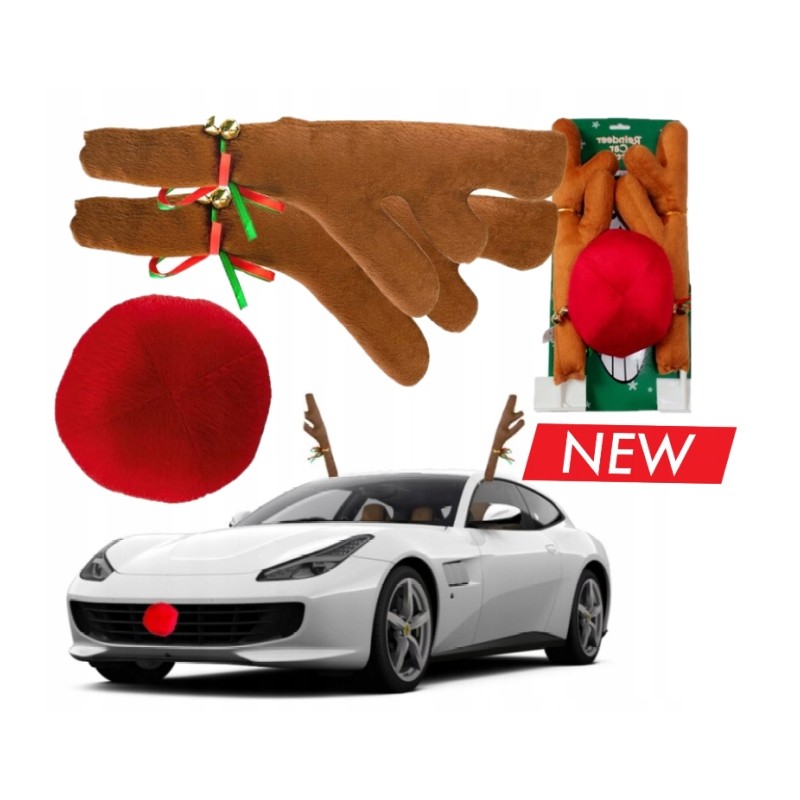 Dekoracja bożonarodzeniowa na samochód rogi renifera z noskiem KSN84
