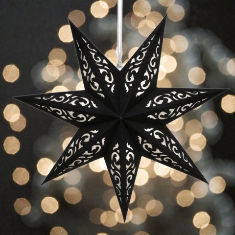 DUŻA GWIAZDA PAPIEROWA ŚWIĄTECZNA AŻUROWA welurowa czarna 35 cm WITRAŻ 3D WG15