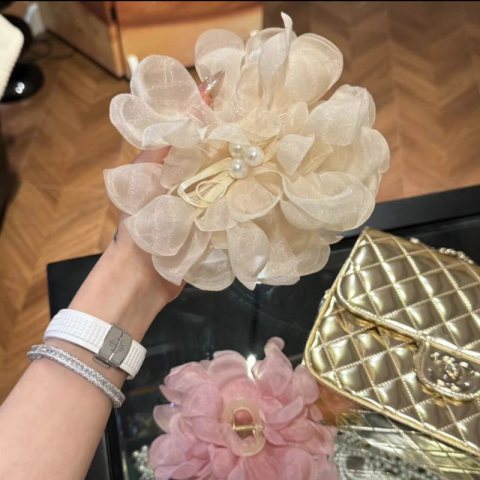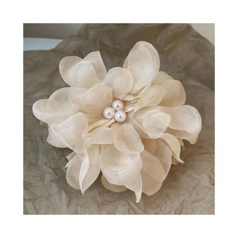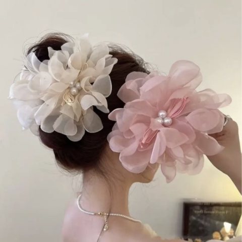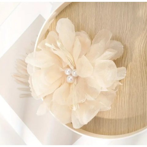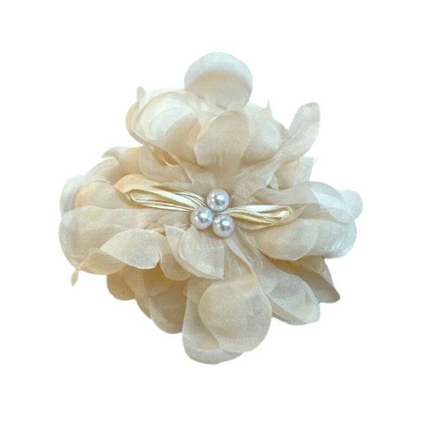 Duża kokarda tiulowa z perełkami, spinka do włosów, klamra SP323B