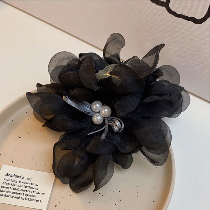 Duża kokarda tiulowa z perełkami, spinka do włosów, klamra SP323CZ