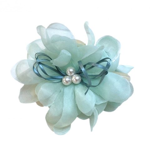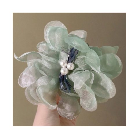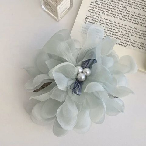 Duża kokarda tiulowa z perełkami, spinka do włosów, klamra SP323M