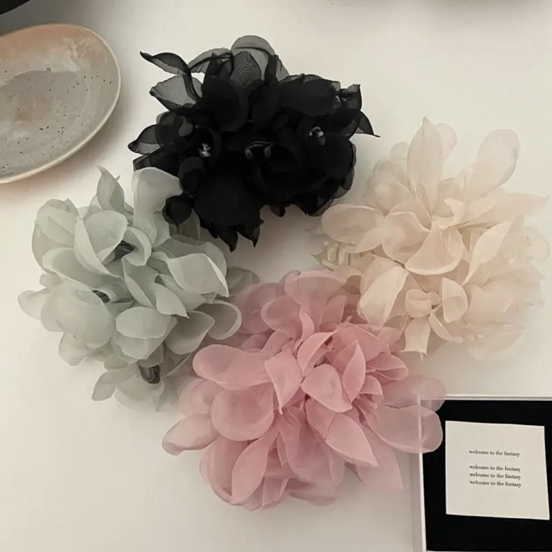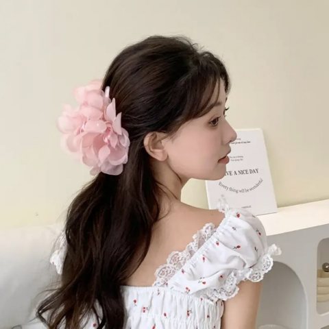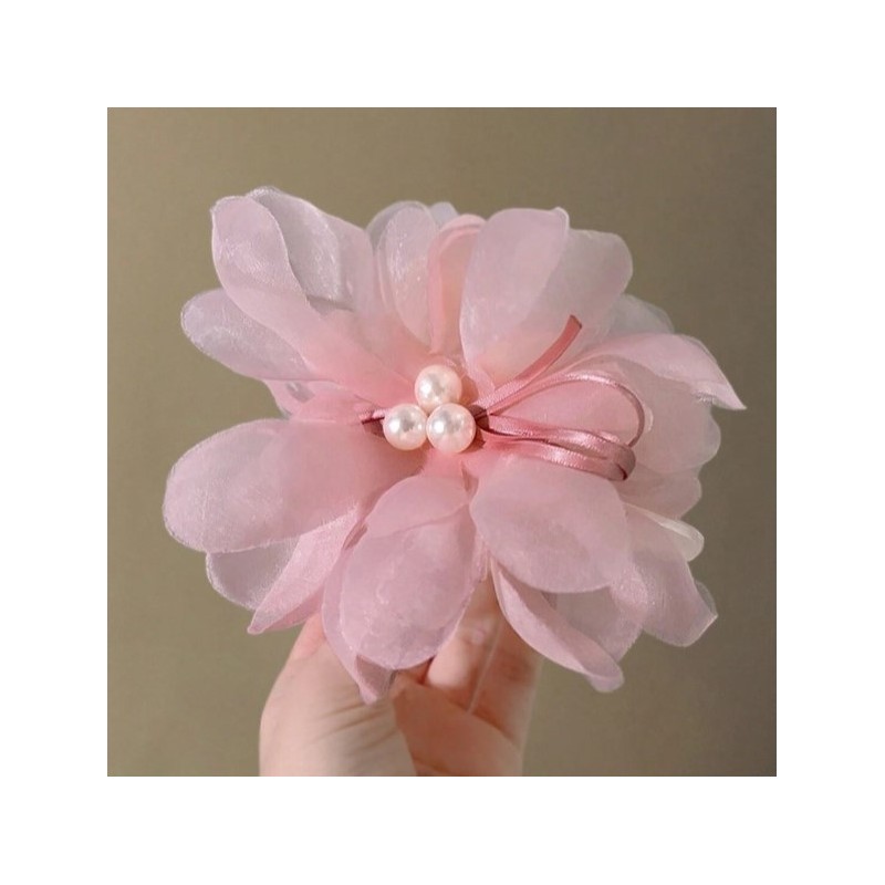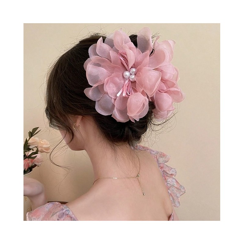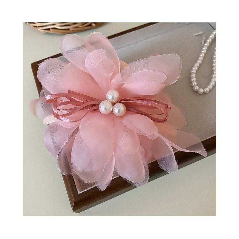 Duża kokarda tiulowa z perełkami, spinka do włosów, klamra SP323R