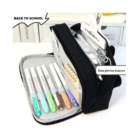 Duży PIÓRNIK wielofunkcyjny dwukomorowy czarny HAPPY CAT PR12