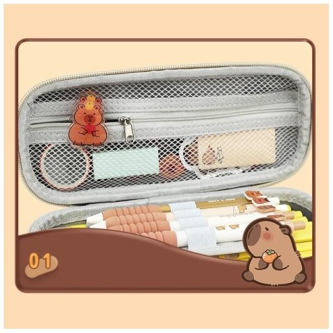 DUŻY PIÓRNIK WIELOFUNKCYJNY JEDNOKOMOROWY Pojemny, wielofunkcyjny jednokomorowy piórnik. Wykonany z wysokiej jakości materiałów. Ergonomiczne wykorzystanie przestrzeni. Specyfikacje: Kolor: brązowy Wymiary: 23 cm x 10 cm x 4cm Waga: 127g