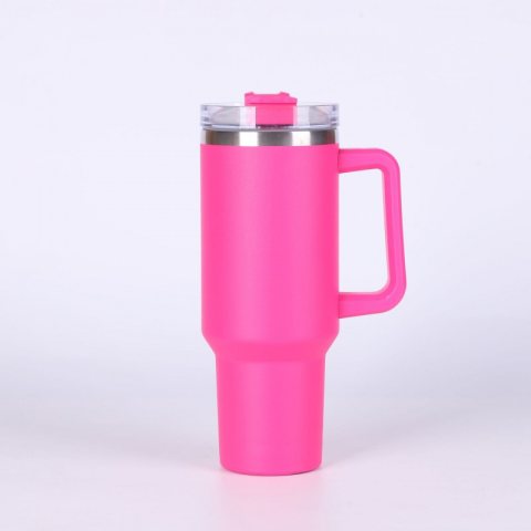 DUŻY POJEMNY KUBEK TERMICZNY Z UCHWYTEM i słomką TERMOS 1L RÓŻOWY CUP10