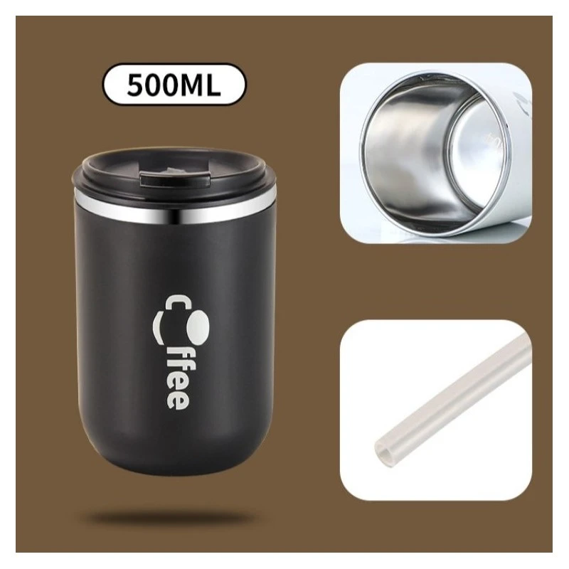 DUŻY POJEMNY KUBEK TERMICZNY ze słomką 500 ml TERMOS zamykany COFFE CUP07WZ3