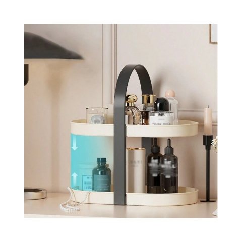 Pojemnik, stojak do łazienki na kosmetyki lub inne produkty Specyfikacja: – Idealne pojemniki do łazienki, garderoby czy sypialni – Organizer przeznaczony do ekspozycji produktowej – 2 poziomy – elegancki wygląd Wymiary: 33cm x 20 cm x 33 cm Wymiary opakowania: 35 cm x 22 cm x 8 cm Waga: 450g netto / 630g brutto Materiał: Tworzywo sztuczne
