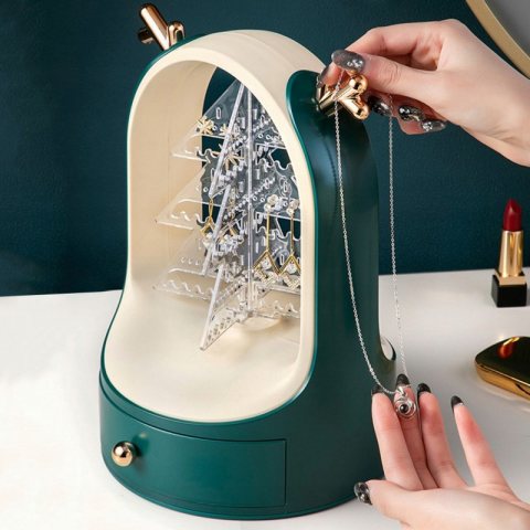 ELEGANCKI EKSPOZYTOR NA BIŻUTERIĘ W FORMIE OBROTOWEJ KARUZELIW ŚWIĄTECZNYM WYDANIUBardzo ciekawy ekspozytor w kolorze zielonymElegancki i niestandardowyWymiary:Wysokość: 27 cmSzerokość: 20 cmGłębokość: 20 cmMateriał:Tworzywo sztuczne Wymiary opakowania:31,5cm x 23,3cm x 23,3cmWaga:630g netto/ 885g brutto