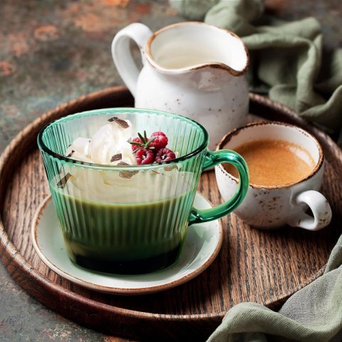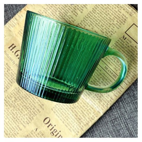 Filiżanka szklanka ryflowana duża butelkowa zieleń 380 ml 1szt SZK178