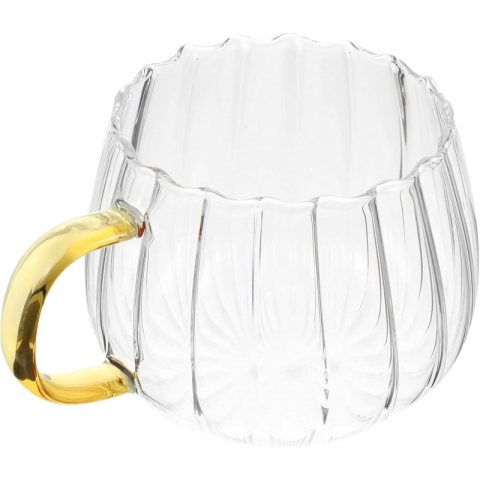 Filiżanka szklanka z falowanymi ściankami ze złotych uchem 350 ml 1szt SZK84