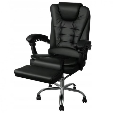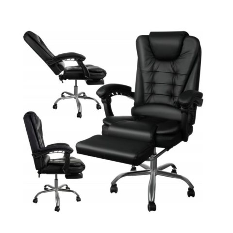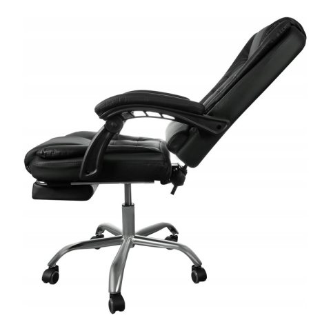Fotel biurowy obrotowy BOSS z podnóżkiem – czarny eco SKÓRA KO22CZ