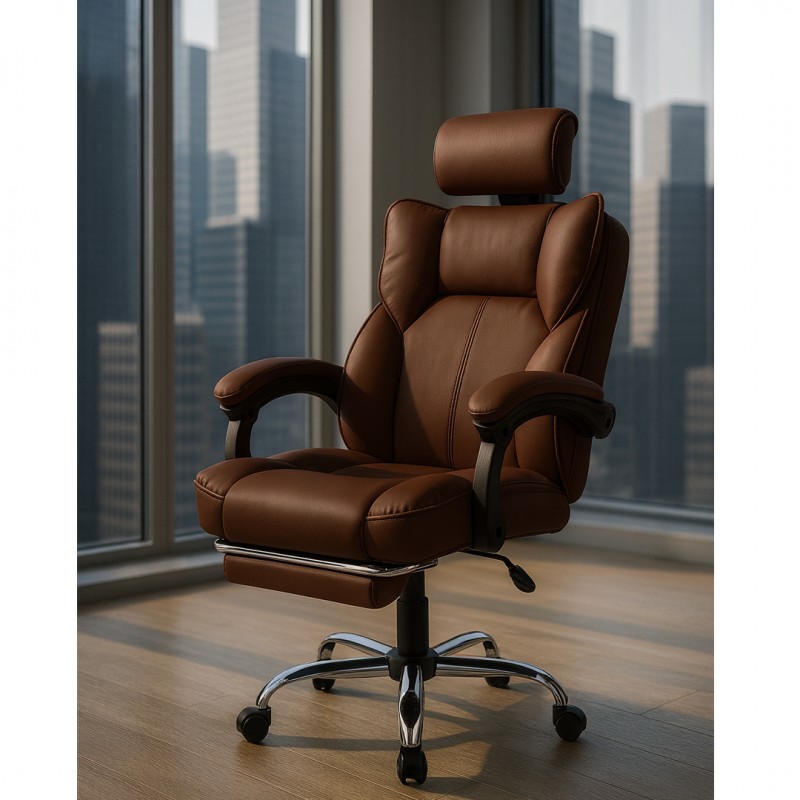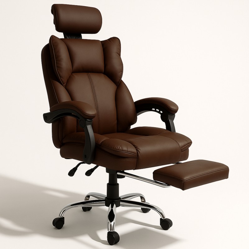 Fotel biurowy obrotowy Directo z podnóżkiem – Brązowy ciemny MATERIAŁ KO49BR