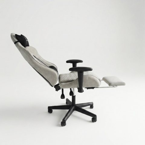 KOMFORTOWY FOTEL GAMINGOWY Z PODNÓŻKIEM Specyfikacja fotela gamingowego maksymalne obciążenie 150 kg wysokość z oparciem: 116-127 cm wysokość siedziska: 45- 56 cm szerokość siedziska: 50 cm całkowita szerokość fotela: 74 cm waga 14 kg Wymiary kartonu z krzesłem: 80 x 29 x 59cm Waga fotela z opakowaniem: kg Materiał: tekstylny, w środku zastosowana wysokiej jakości pianka EPE Cechy: oparcie, zagłówek powleczone materiałem regulacja kąta odchylenia oparcia wraz z blokadą regulowana wysokość podłokietników możliwość ustawienia podłokietników na wewnątrz na na zewnątrz podłokietniki pokryte gąbką oraz ekoskóra stabilna i wytrzymała pięcioramienna podstawa wysokiej jakości kółka plastikowe regulowana poduszka lędźwiowa z masażerem komplet dwóch poduszek welurowych w zestawie REGULACJA – fotel posiada regulacje wysokości siedziska. Dzięki temu możesz dostosować jego wysokość do swoich indywidualnych potrzeb co jest niewątpliwą zaletą. Możliwość regulacji odchylenia fotela, (90 -155 stopni) gwarantuje Ci chwilę relaksu i rozluźnienia. Zdjęcia poniżej przedstawiają rzeczywisty produkt.