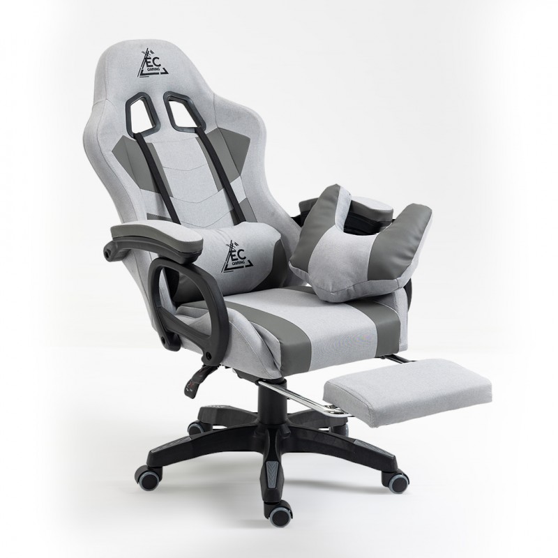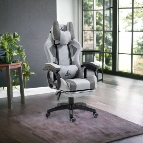 Fotel gamingowy obrotowy STUDENT, podnóżek i poduszka masująca, szary KO23SZ