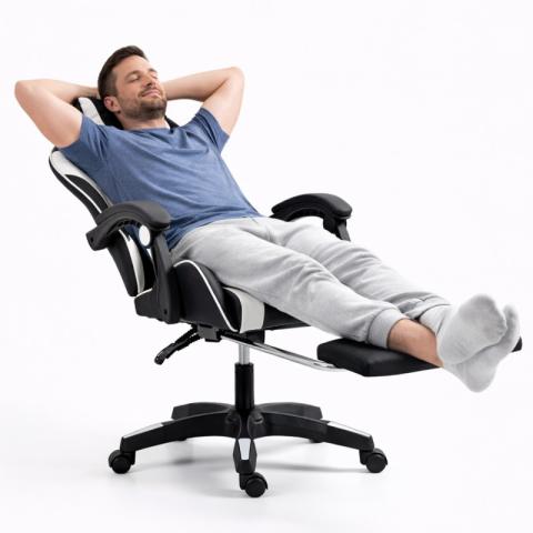 Fotel gamingowy obrotowy z podnóżkiem EC GAMING masażer KO24B